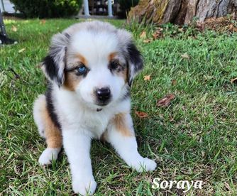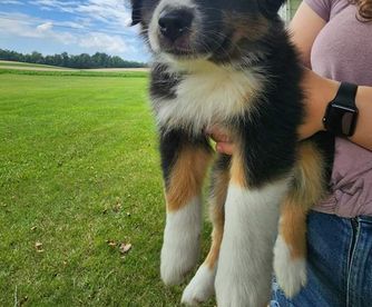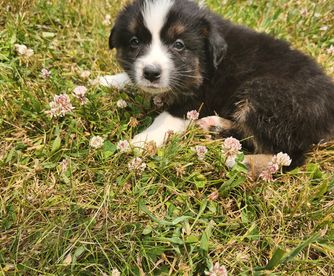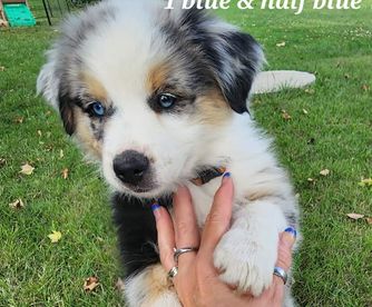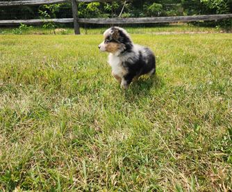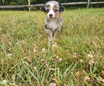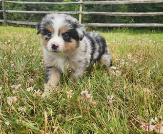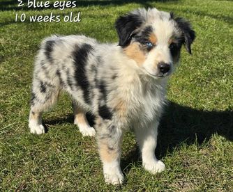 Our Miniature Australian Shepherd puppies include red & white, blue merle, black tri, red tri, and red merle. Colors will vary depending on the parent dogs.