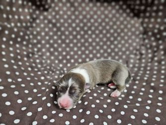 Super sweet laid back, loves to court the ladies. He is Triple clear and is a red sable bluie.