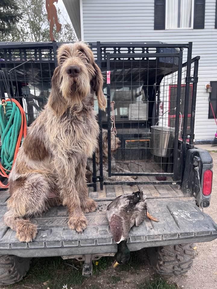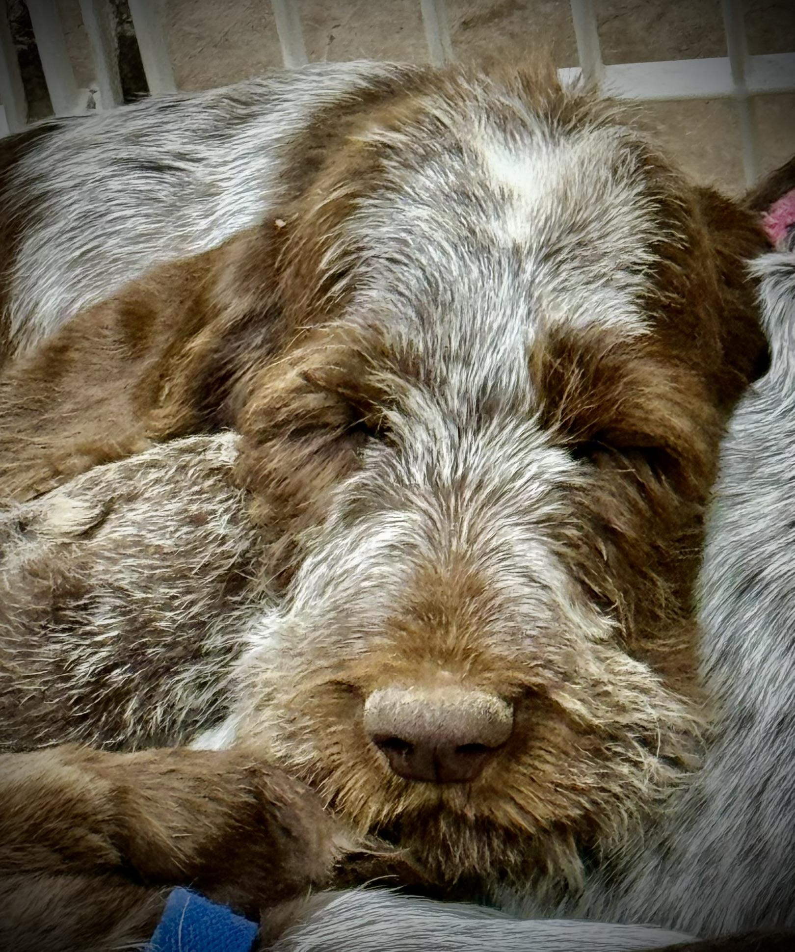 Purposeful and ethical breeding is so important for the healthy progression of the Spinone Italiano. My goals are to breed with a focus on health, good temperament, structure, and field ability for a well-rounded dog!