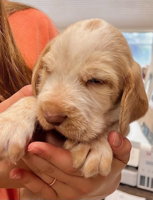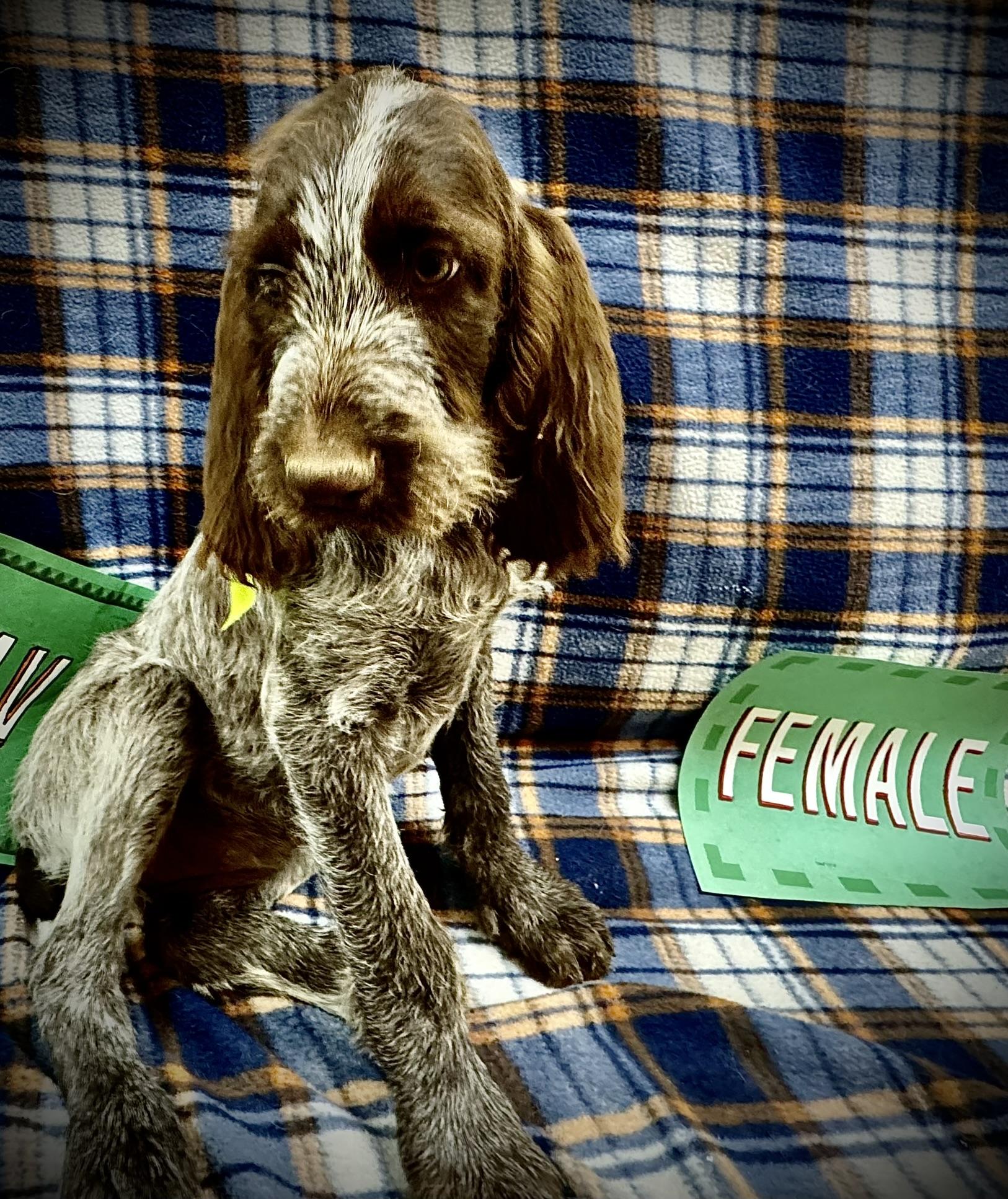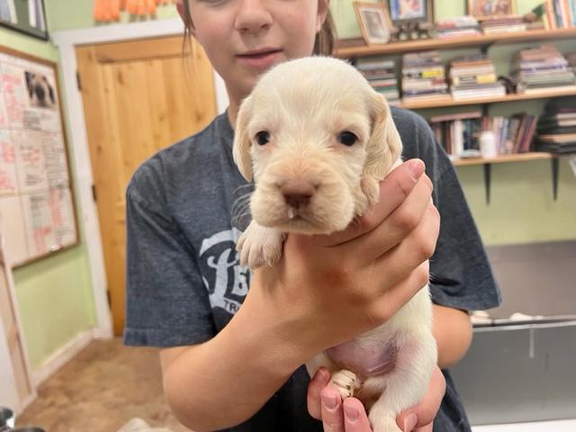 Bertha has been health screened for hip dysplasia, elbow dysplasia, heart and thyroid conditions. Tested for eyes (CERF exam) Clear for C.A - DNA tested. No history of unexplained seizures or any other obvious hereditary medical conditions. Health screening of breeding stock cannot guarantee that your puppy will be excluded from any of these problems but the risk factor is mitigated substantially. Bertha has sound genetic quality. Amazing temperament, sweet expressive eyes, attentive. Correct structure, and Field Savvy for a well rounded dog. A perfect addition to our family.