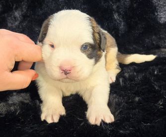 Amethyst is a 3rd generation baby here at Mtn Valley! Amethyst has a spectacular temperament and is such a delightful girl to be around! She loves the attention in the show ring as spends most of her days wandering our farm and LOVES going to work with mom at the pet resort we own and operate! Amethyst has put all of her heart into her very first litter of puppies and has done a wonderful job rearing her litter of 3!