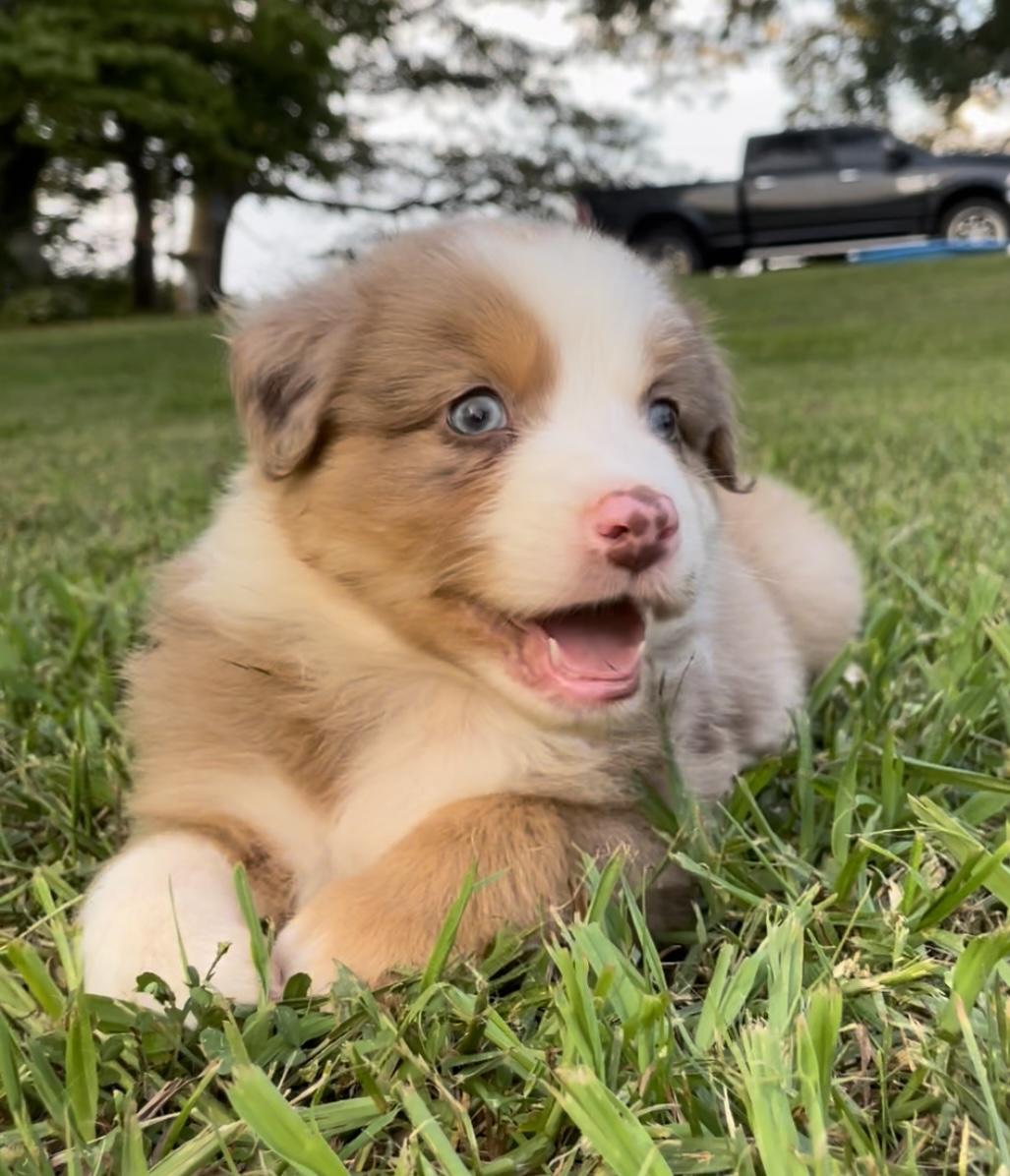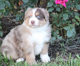Our puppies include black, red merle, blue merle, and red. Colors will vary depending on the parent dogs.