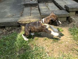 Our puppies include black, blue, and brindle. Colors will vary depending on the parent dogs.