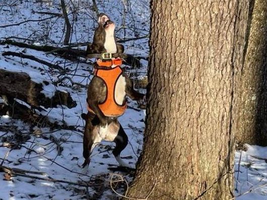 Katie is a very nice pleasure-hunting female. Super-intelligent and an early starter, treeing by both sight and scent at five months. She is very friendly - a great family dog. She has already produced three outstanding litters.