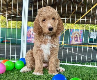 Ruby is a female Goldendoodle. Carefully selected as a great representative of her breed, Whitney decided to make her part of their program. Whitney has passed Good Dog’s screening process, which involved a review of their breeding practices, environment, and the mental and physical health of their dogs.