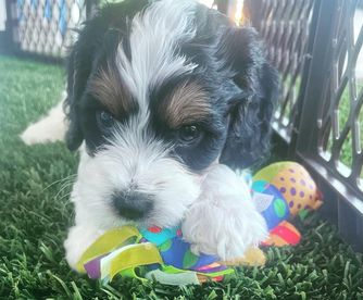 Piper is a female Cavapoo. Carefully selected as a great representative of her breed, Whitney decided to make her part of their program. Whitney has passed Good Dog’s screening process, which involved a review of their breeding practices, environment, and the mental and physical health of their dogs.