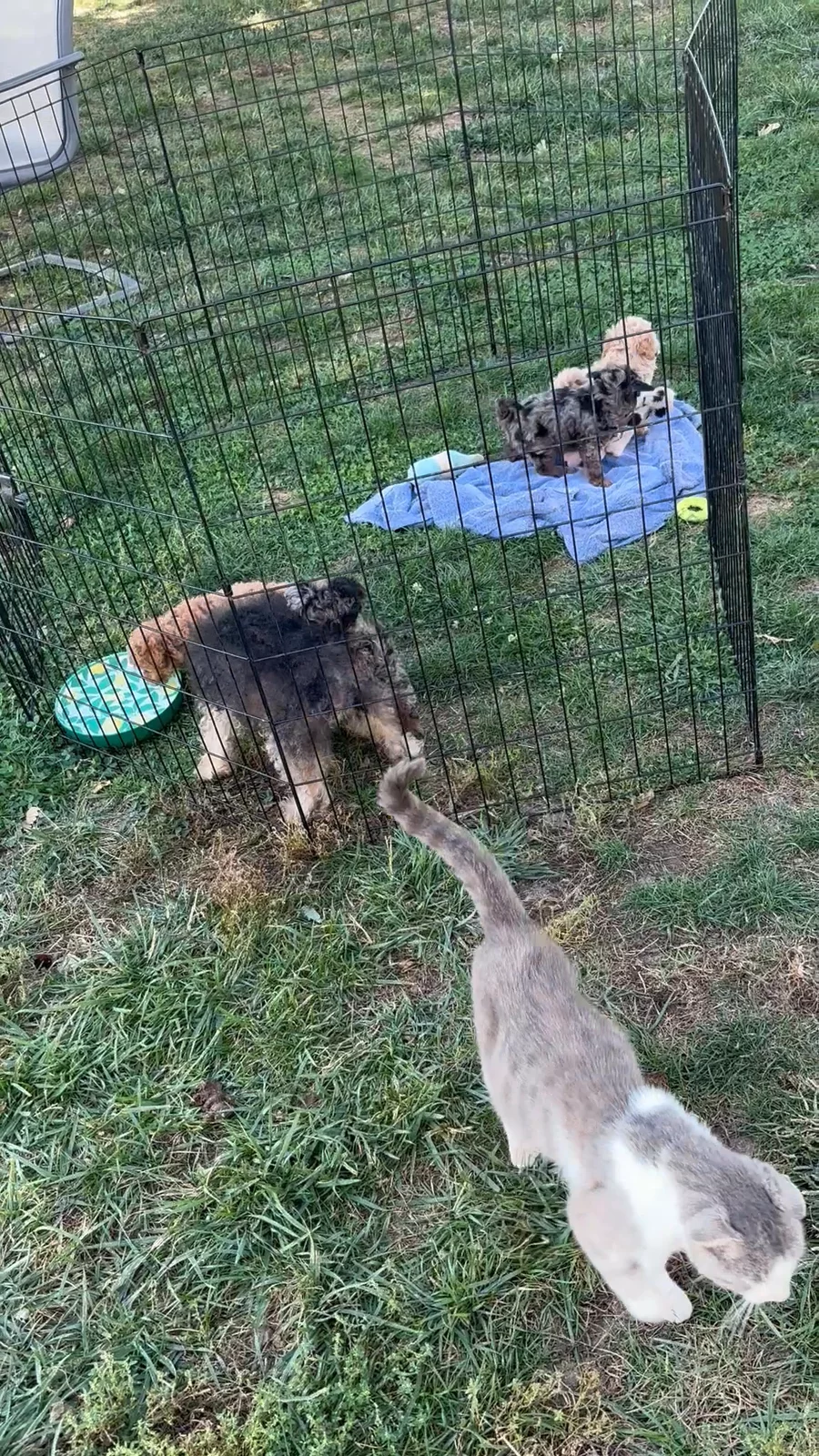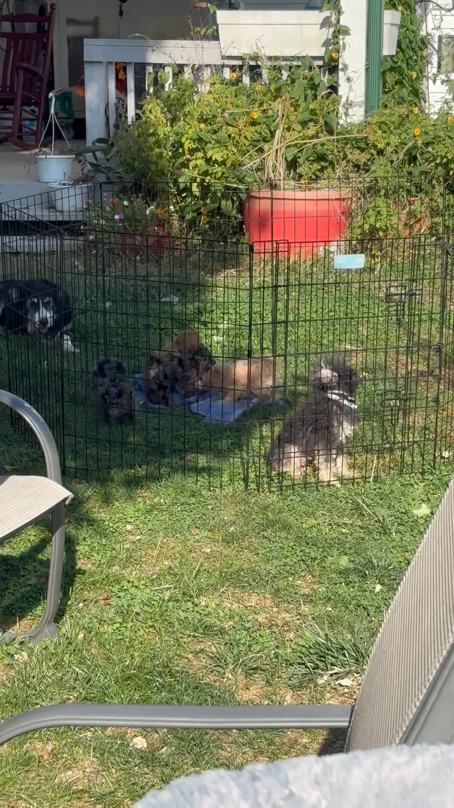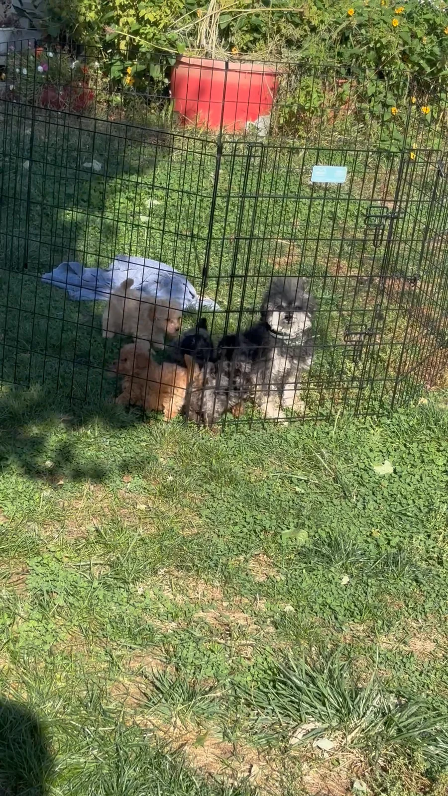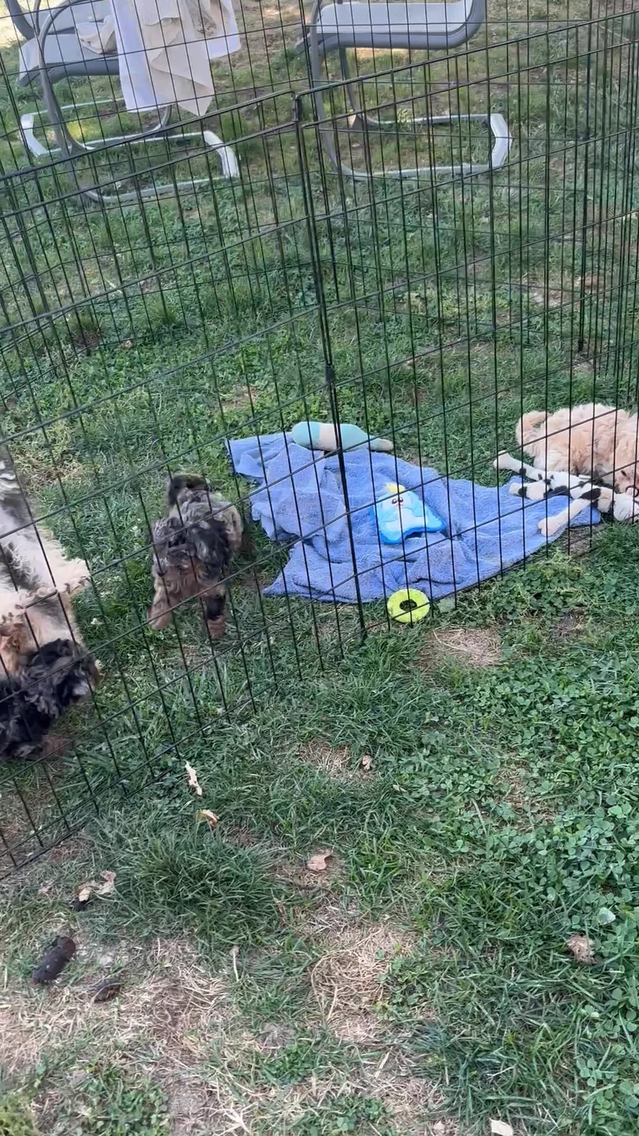 Penny’s litter has had their first rounds of shots and dewormers. They are learning potty training and socializing. They are all very bubbly and playful pups. Now that the weather is nicer they are enjoying their outside play time!