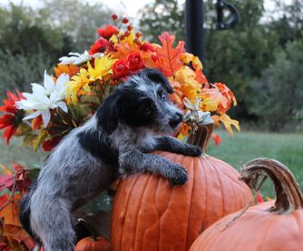 Dahlia is gentle natured. She is sweet as honey. Loves to give gentle nose kisses. She is 14” tall and also 14 pounds. She loves being held.