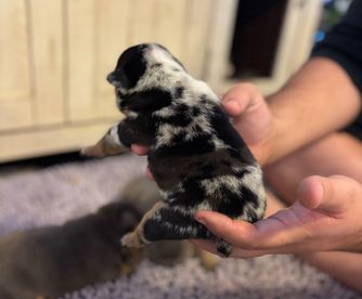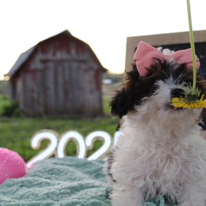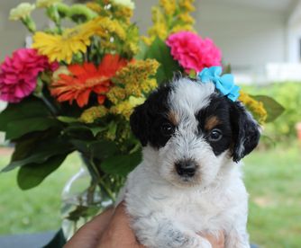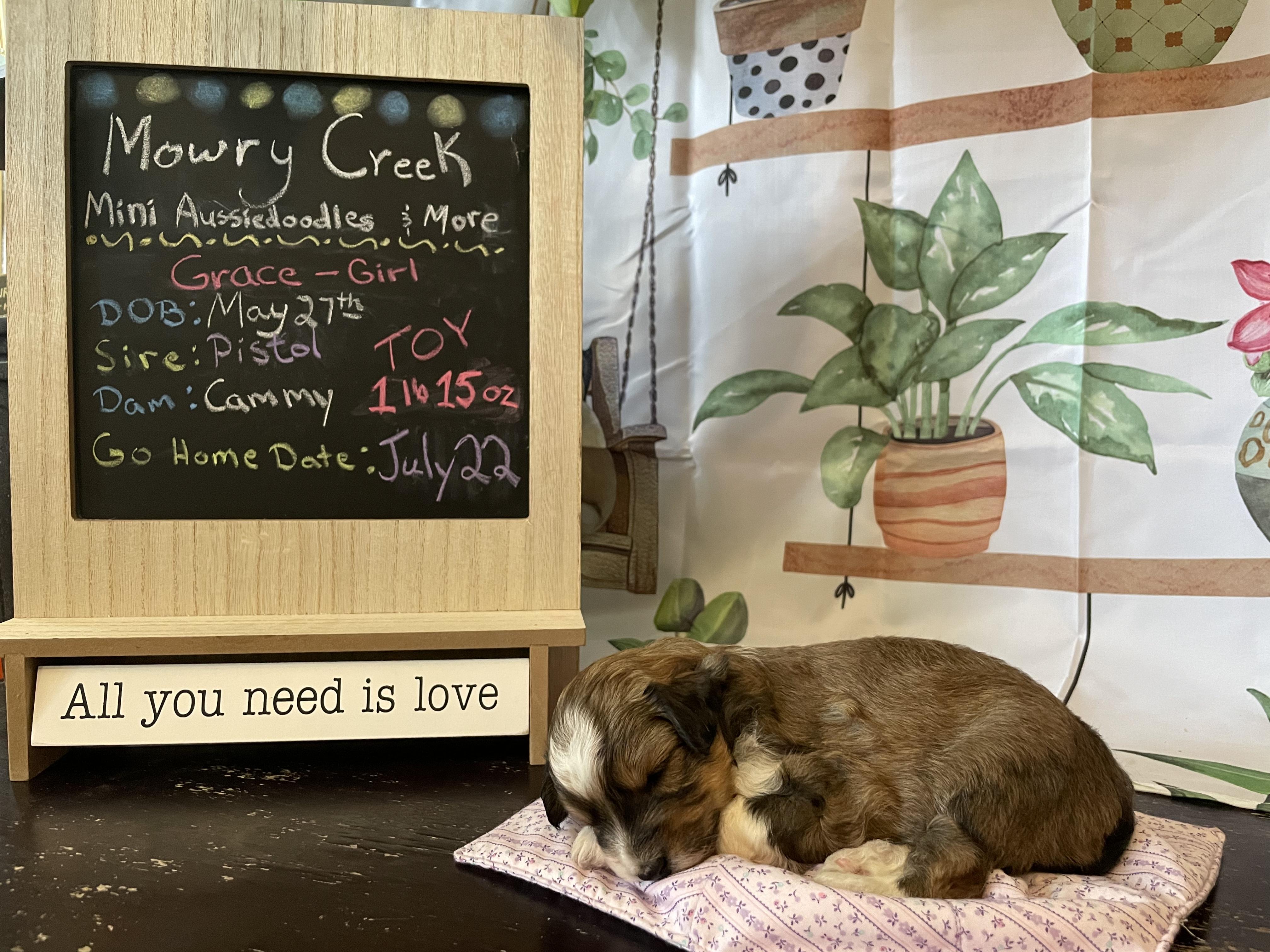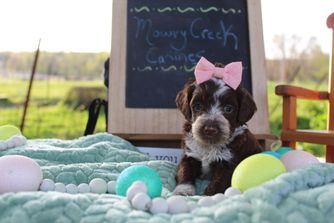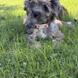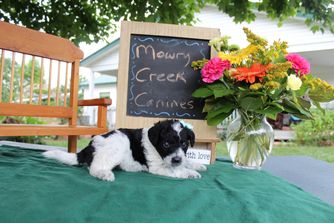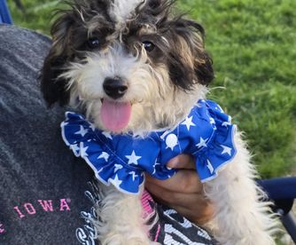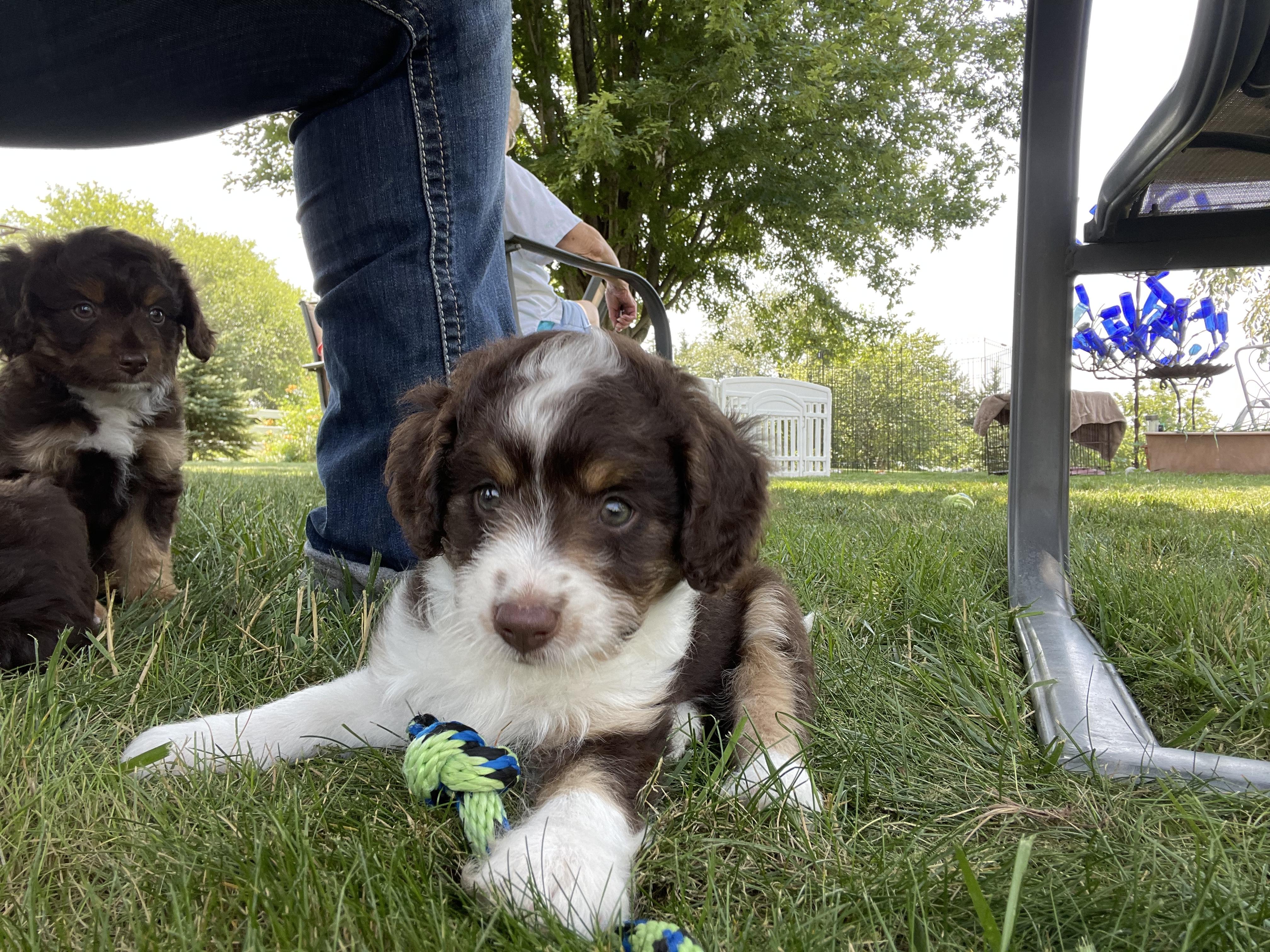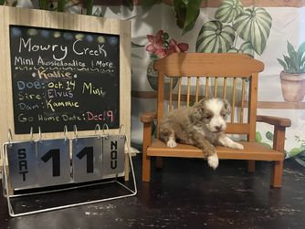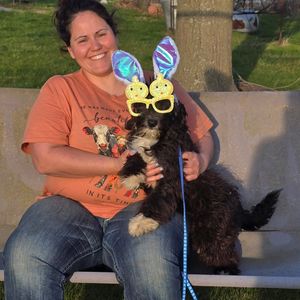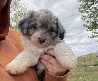 I'm Leslie B., the breeder behind Mowry Creek Mini Aussiedoodles and More located in Hopkins, MO. We set our puppies up for success by subjecting them to many different types of surroundings, people, and other stimuli. All of our puppies are raised in home and learn age appropriate manners, crate training, and potty training. They are well socialized with people, cats, and other dogs.