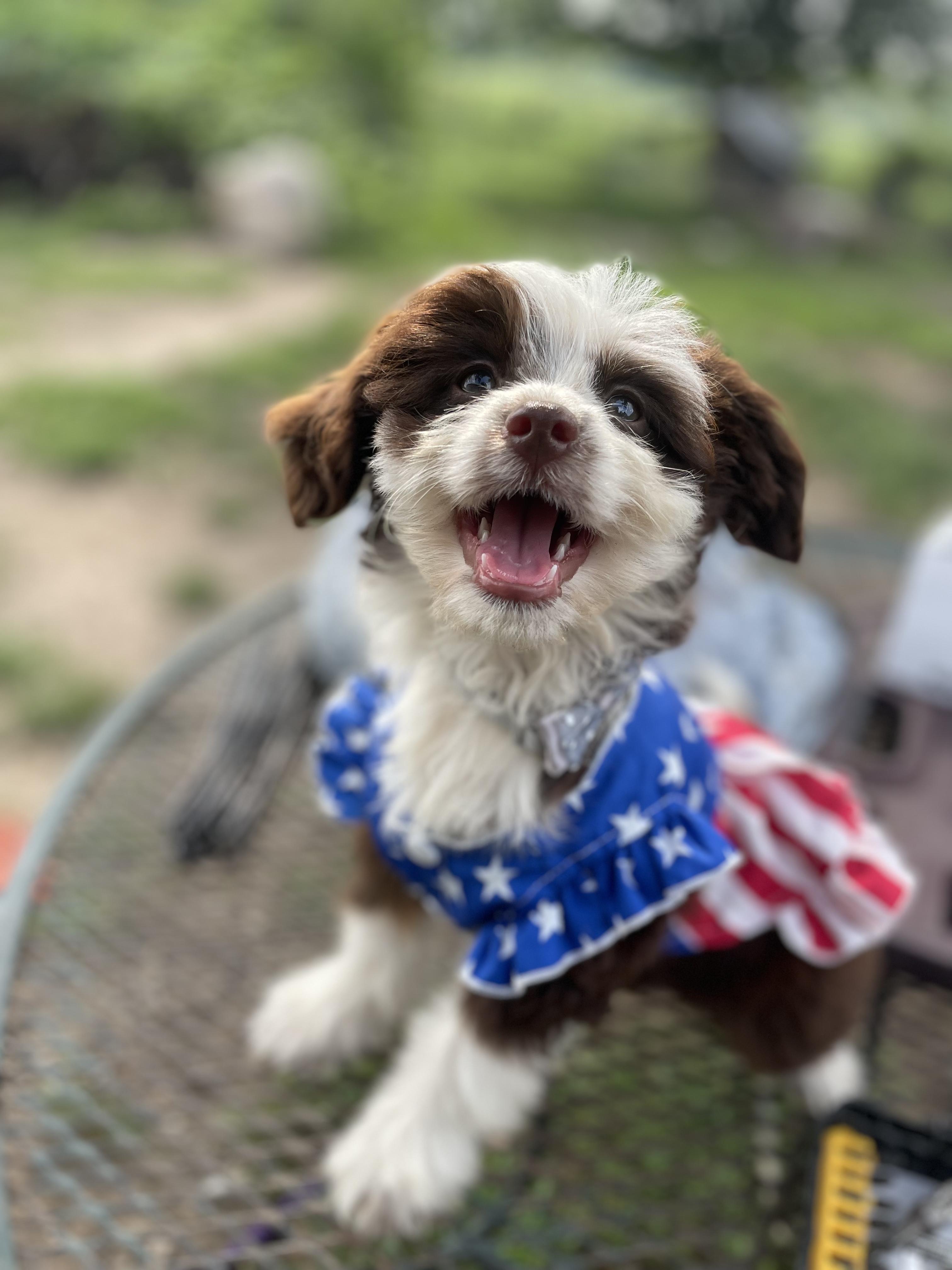 Toy Australian Shepherd puppies include red & white and blue merle. Aussiedoodle puppies include sable, brown and white, blue merle, red merle, black phantom, black and white, black tri-color, red phantom, and red tri-color. Poodle puppies include apricot and red. Miniature Australian Shepherd puppies include blue merle, black tri, red merle, and red. Colors will vary depending on the parent dogs.