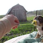 Our puppies get a farm living experience and they are raised in our home. They are not treated any different from our dogs. They learn to potty outside with the big dogs and learn proper house rules. Almost all of the adult dogs in our program came from large kennels. While they had the very best care at their prior homes, they did miss out on some of the regular “pet” and farm dog experiences.