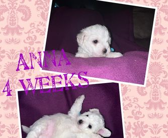 Colby is a female Bichon Frise almost 3 years old. Carefully selected as a great representative of her breed, Amanda decided to make her part of their program. Amanda has passed Good Dog’s screening process, which involved a review of their breeding practices, environment, and the mental and physical health of their dogs.