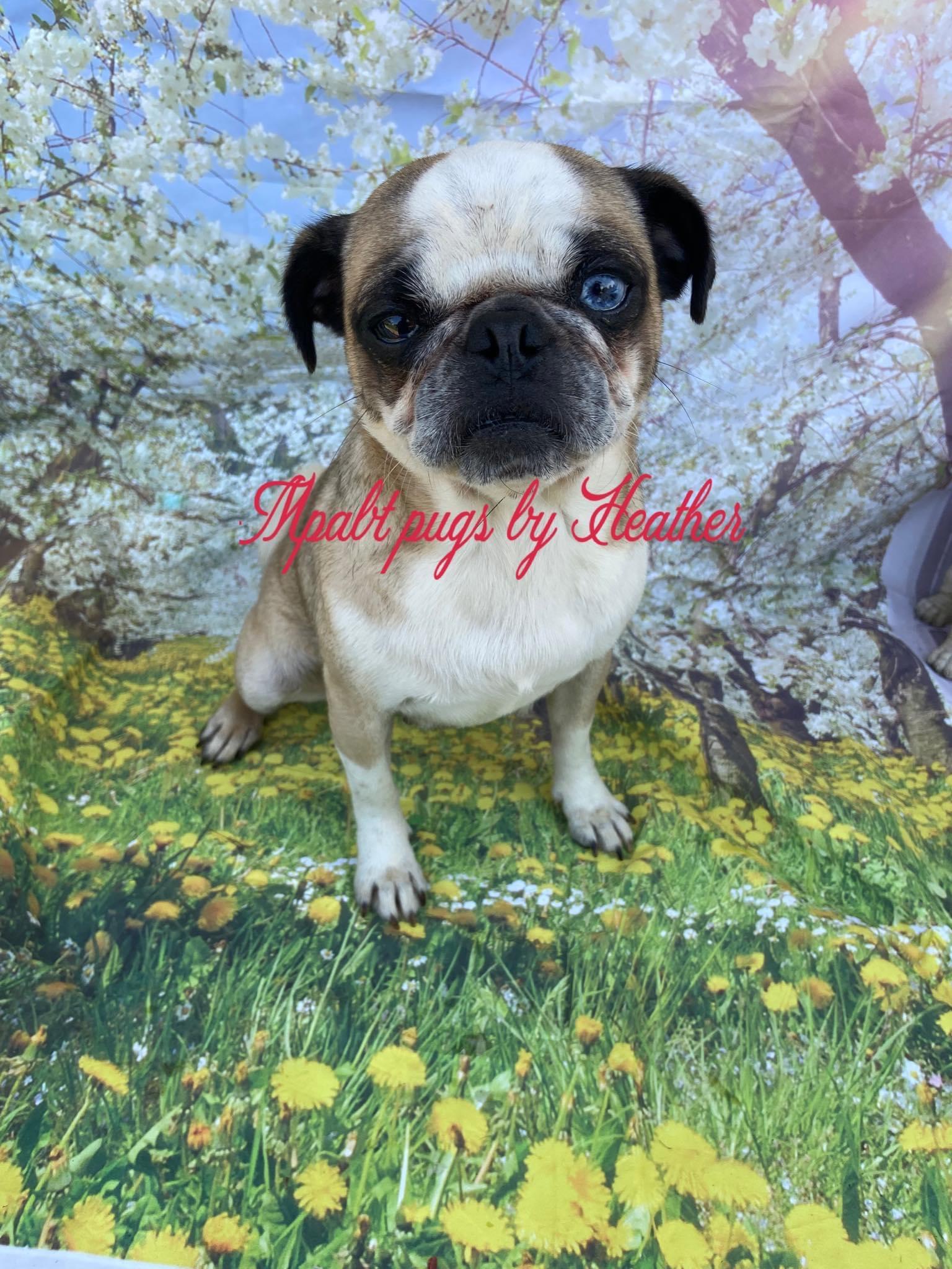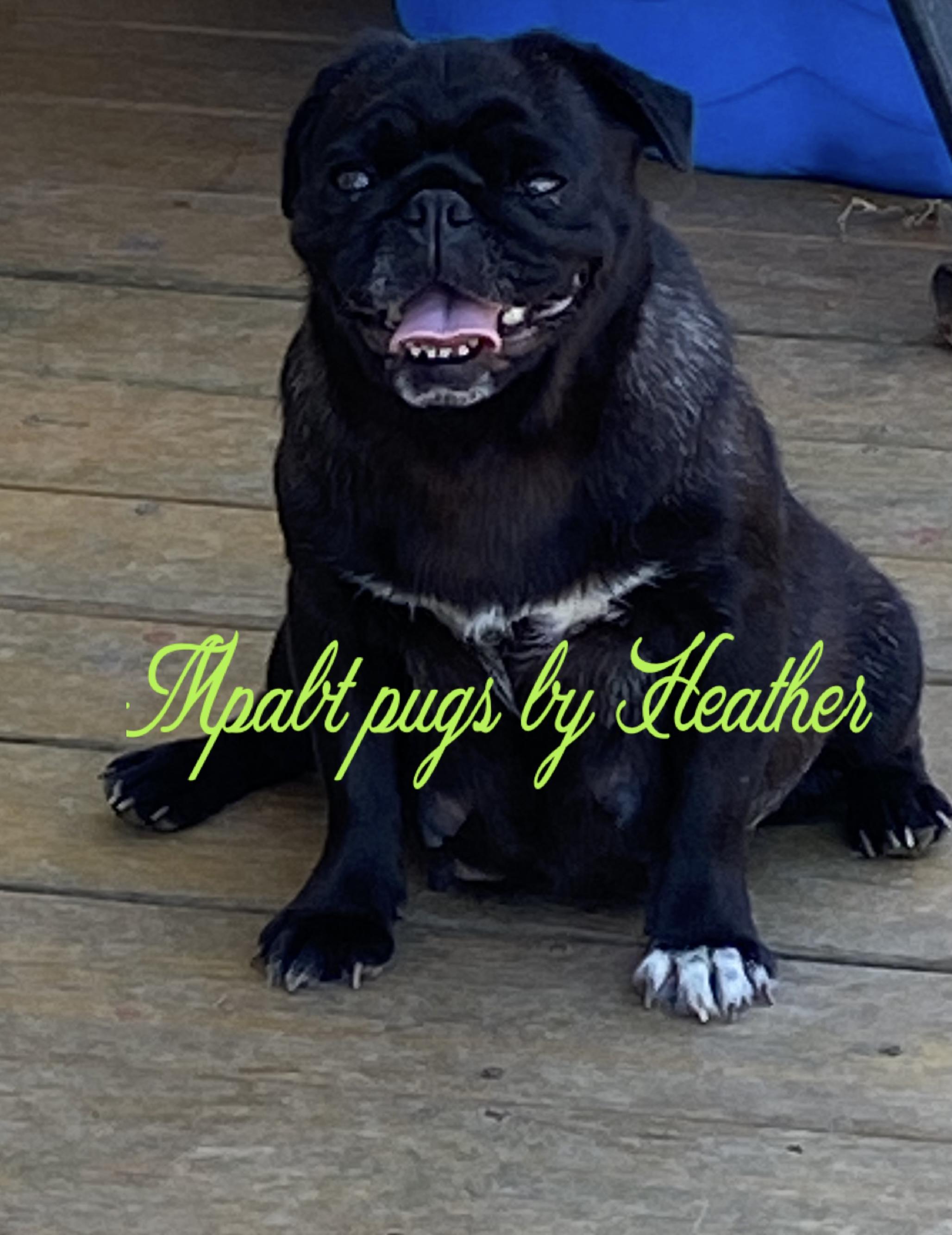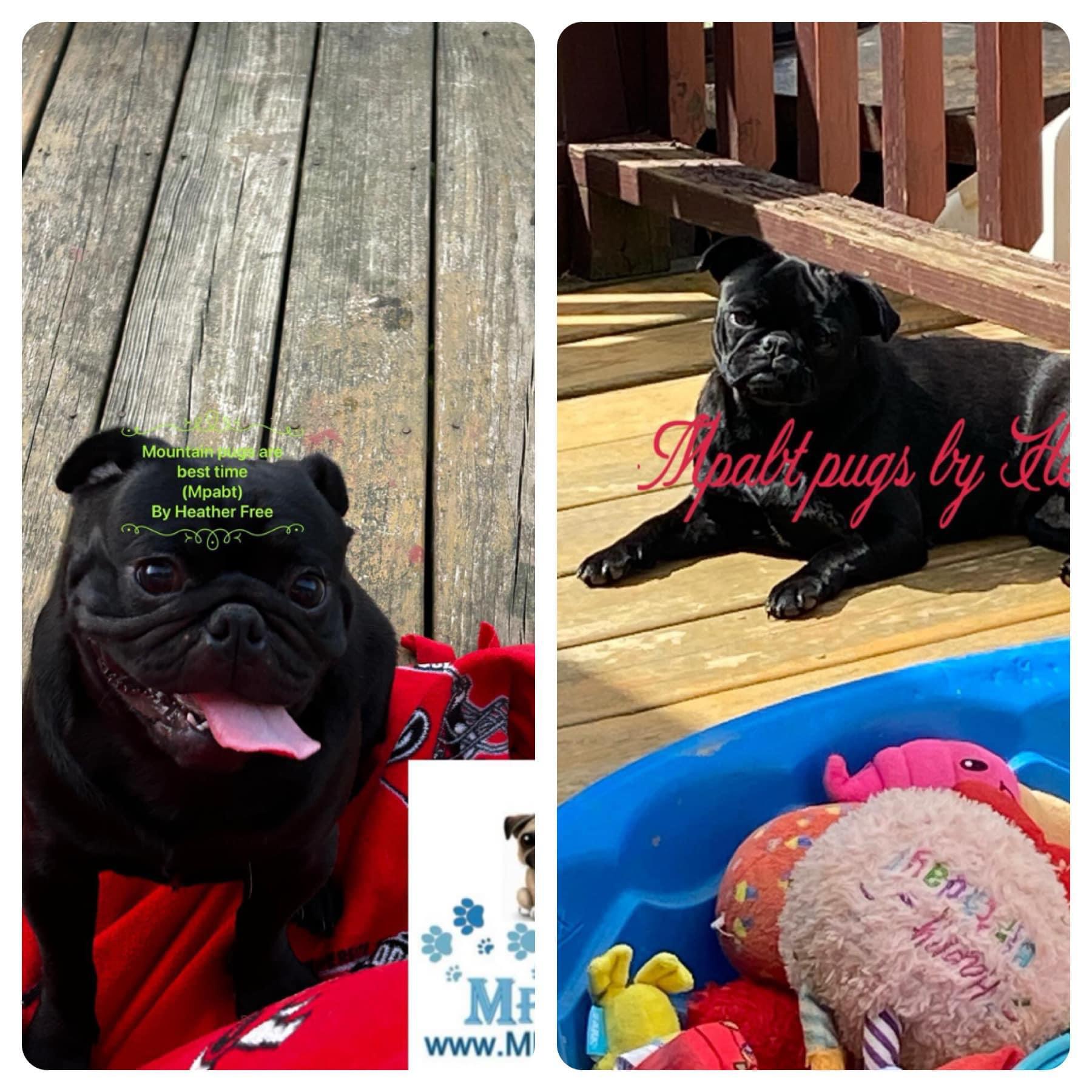 I'm Heather F., the breeder behind Mpabt by Heather Free located in Toccoa, GA. Hi! I am the breeder behind Mpabt (mountain pugs are best time) located in North GA. My program is AKC .I am devoted to breeding the best quality I can. We do occasionally work with Jewalsjems who is nc but we meet with pups either myself and steve.
