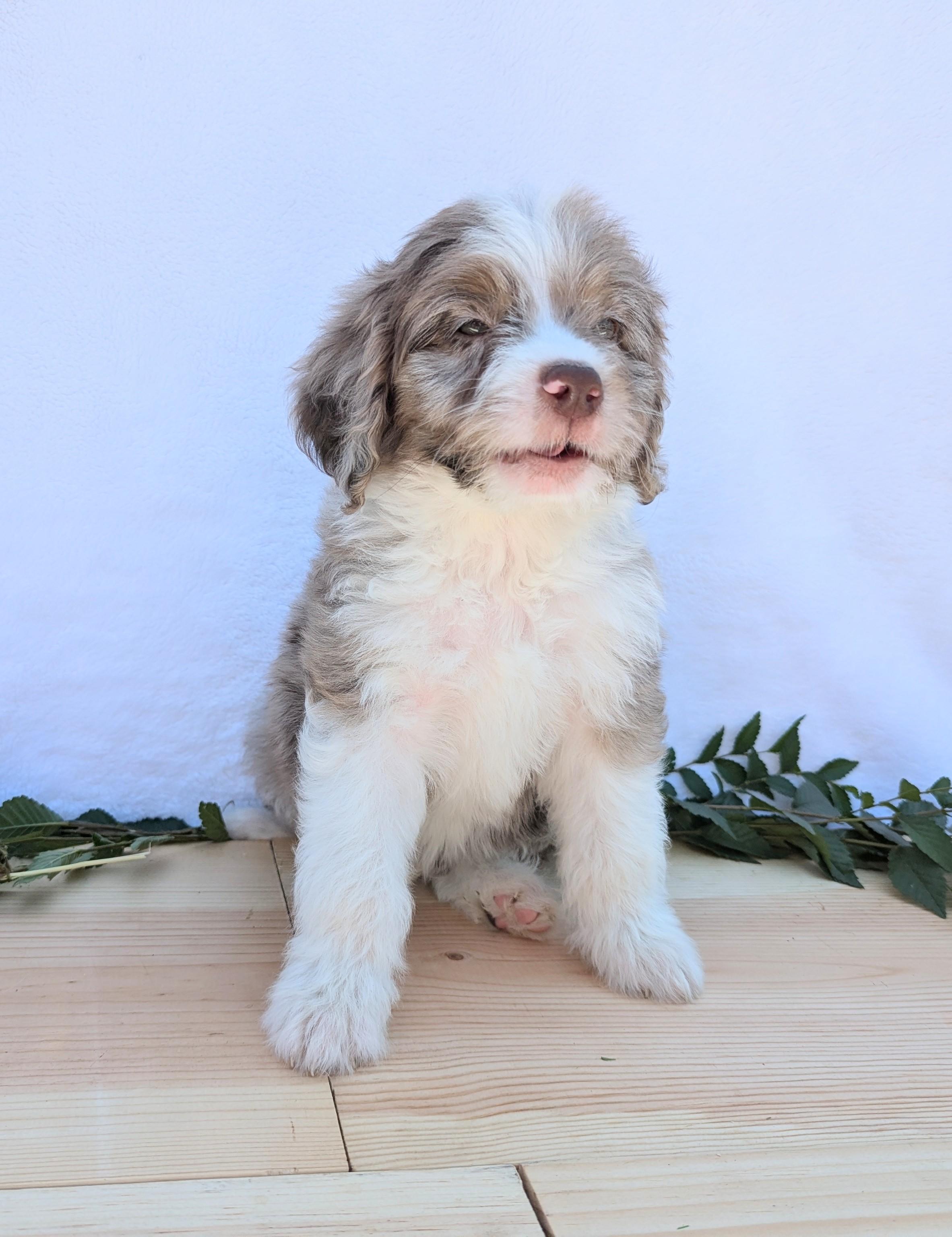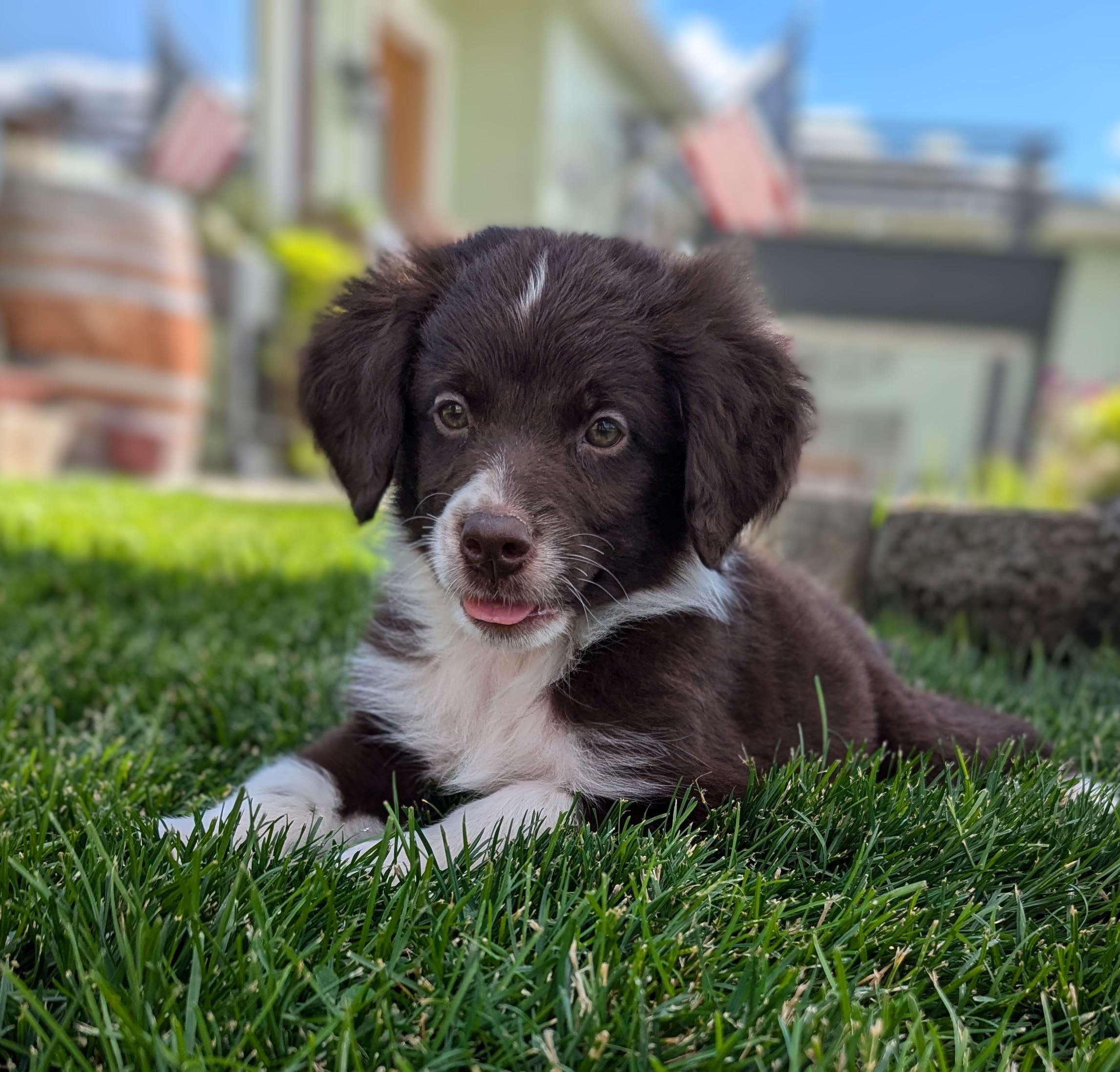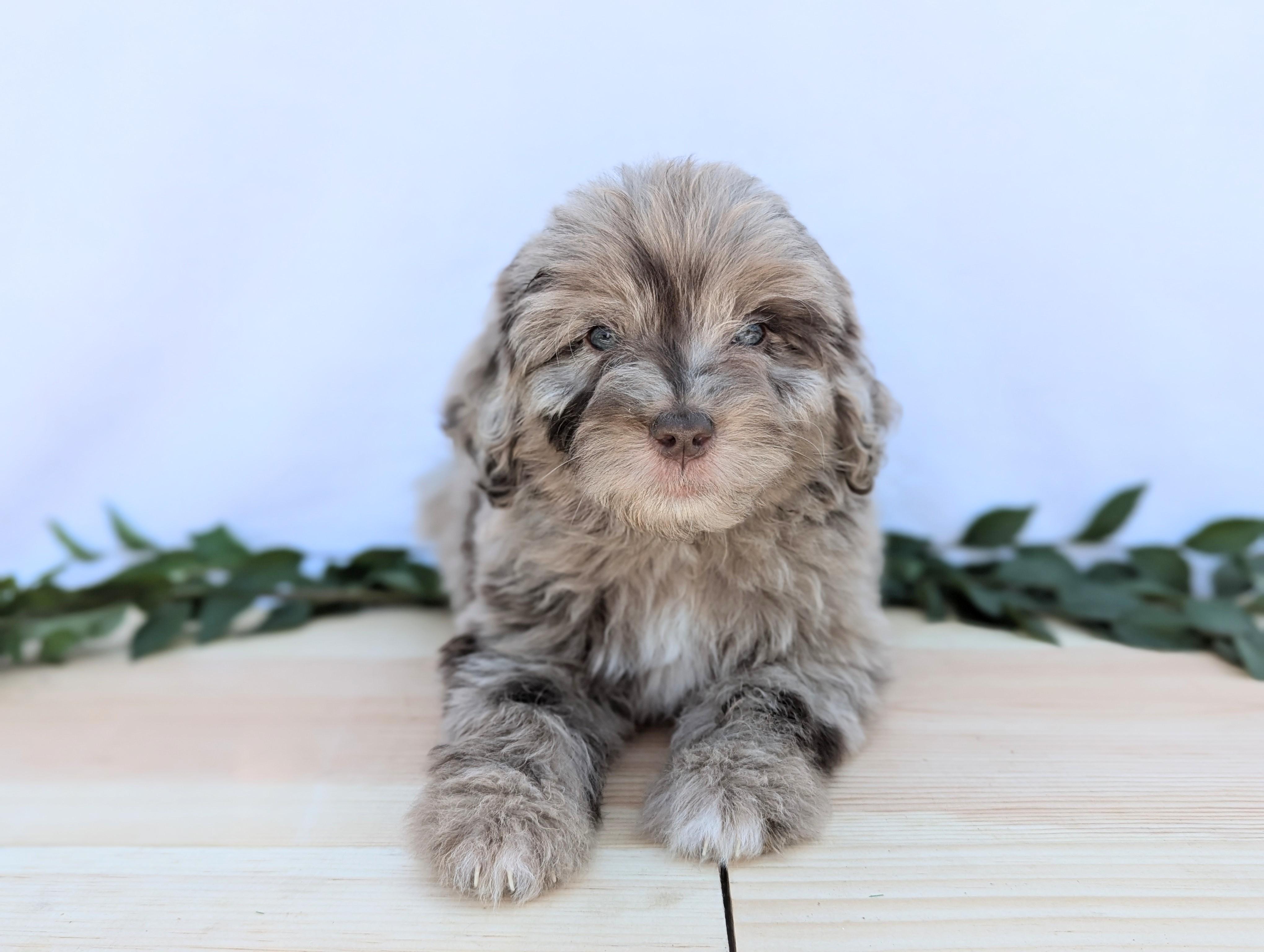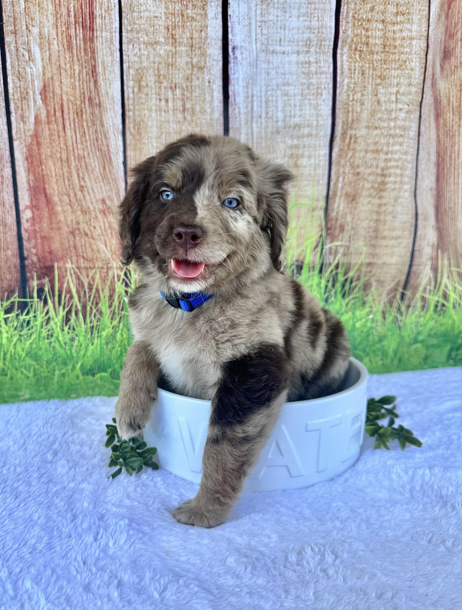 Our Aussiedoodle puppies include brown and white, blue merle, and red merle. Australian Shepherd puppies include red merle, blue merle, black tri-color, and red tri-color. Colors will vary depending on the parent dogs.