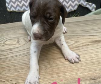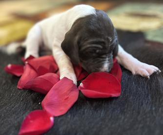 Our puppies include black roan, white and liver, liver and white, and liver. Colors will vary depending on the parent dogs.