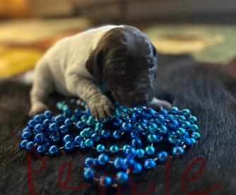 Paris is a female German Shorthaired Pointer. Carefully selected as a great representative of her breed, Marsha decided to make her part of their program. Marsha has passed Good Dog’s screening process, which involved a review of their breeding practices, environment, and the mental and physical health of their dogs.