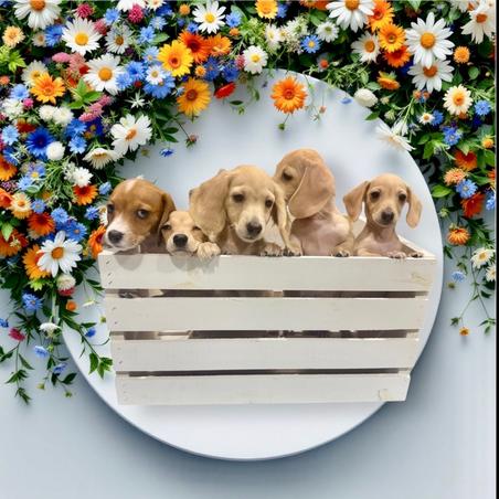Our healthy babies are raised in our home with children, hand held often, well socialized and are a rainbow of colors. We are a family of beautiful miniature dachshunds.