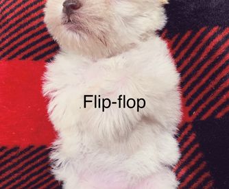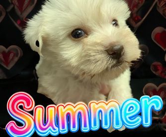 Stunningly beautiful this double blue eyed wheaton is amazing. Her pictures says it all! She is a whopping 7lb.