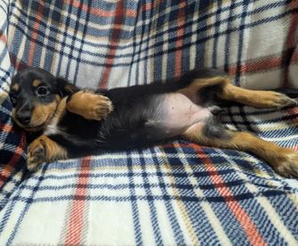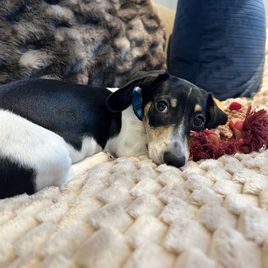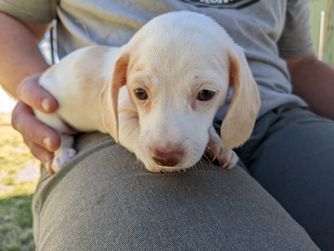 I had a great experience with Melissa and am very happy with working with her and also with my very sweet puppy, Hazel. Melissa took a lot of care in making sure Hazel and I were a good match including a FaceTime visit as well as asking questions about my wants in a puppy. After I decided on Hazel, Melissa provided weekly updates and pictures to keep me informed about the puppy's progress. We arranged for me to pick up Hazel and Melissa worked with my schedule as we were on an RV road trip. Pickup went very smooth and Melissa proved a full "puppy kit" of absolutely everything we needed. And now for the most important part: Baby Hazel. She is everything we had hoped and it is evident that she was socialized with people and other dogs. She uses the little puppy pad tray for her potty needs and is fine with our other dog, who weighs 60 pounds. Hazel loves her little bed and we are starting crate training, which is going well. She is eating well and responding to treats. She is just a really nice little puppy. MRS Long Dog Ranch definitely delivered on what we wanted and Melissa was very nice to work with