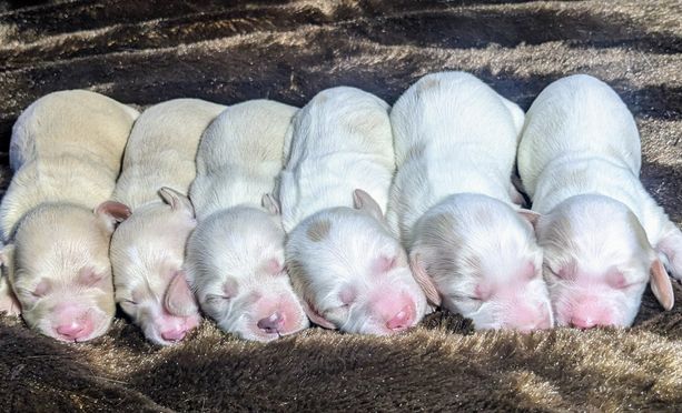 Our puppies include smooth and longhaired coat varieties. Coat types may vary depending on the parent dogs.