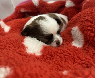 In term of appearance she has a stunning apple head, is 1.03oz at 9 weeks and charting to 3.5 lbs MAX. Any of Mercedes pups would make a wonderful companion for a family with children or a younger couple looking to take her everywhere with them. I can not recommend her enough!!
