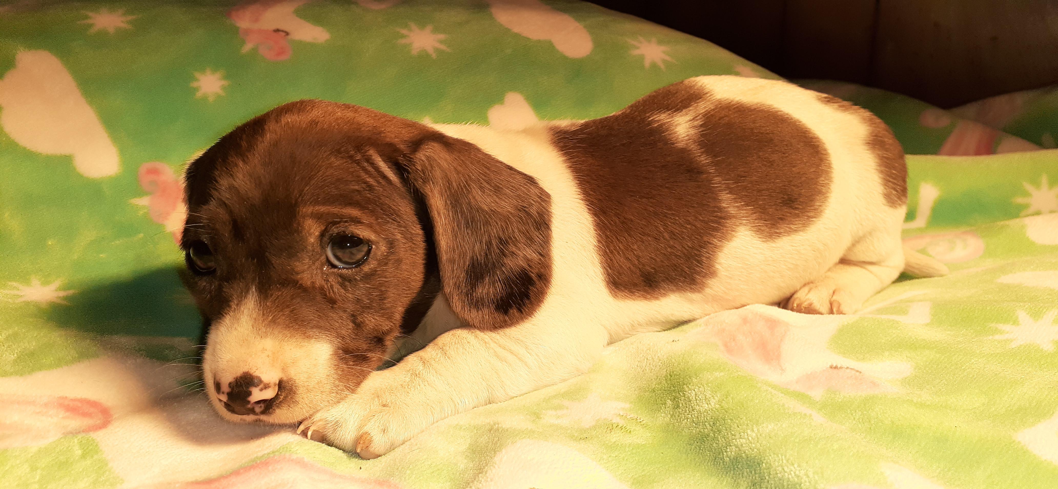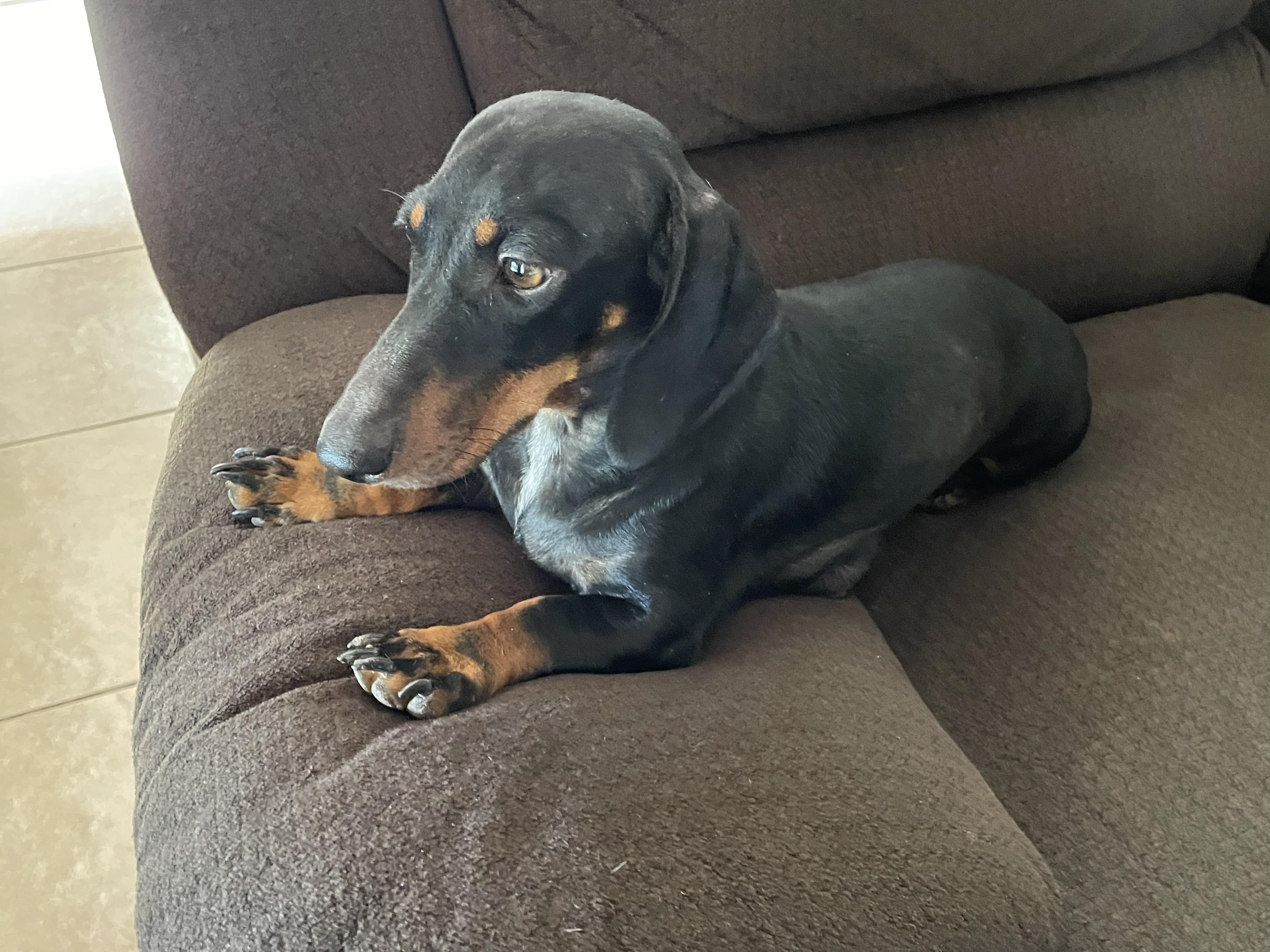 Chocolate chip is a female Dachshund. Carefully selected as a great representative of her breed, Mario decided to make her part of their program. Mario has passed Good Dog’s screening process, which involved a review of their breeding practices, environment, and the mental and physical health of their dogs.