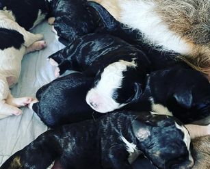 Our puppies include black and white, tri-color, and phantom. Colors will vary depending on the parent dogs.