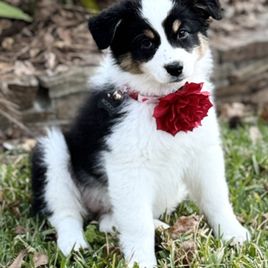 Our puppies include blue merle and black tri-color. Colors will vary depending on the parent dogs.