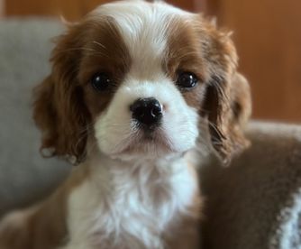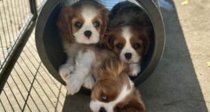 Our Cavalier King Charles Spaniel puppies are blenheim. Dachshund puppies include red and black and tan. Colors will vary depending on the parent dogs.