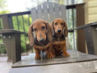 Dachshund puppies have smooth coats. Coat types may vary depending on the parent dogs.