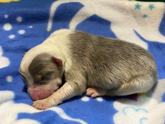 “$300 deposit is non-refundable. All of our puppies in a litter are the same price regardless of color or sex. Pups will be up to date on vaccinations, wormings, started on heartworm and flea prevention meds prior to leaving us. Pups come with an extensive puppy pack including a bag, litter scented blanket, akc registration, collar, leash, bandana, toy, treats, food, education information, letter about routine and what we have done here, samples of many different puppy products, and many other things. Microchipping available. Health guarantee and health certification.”