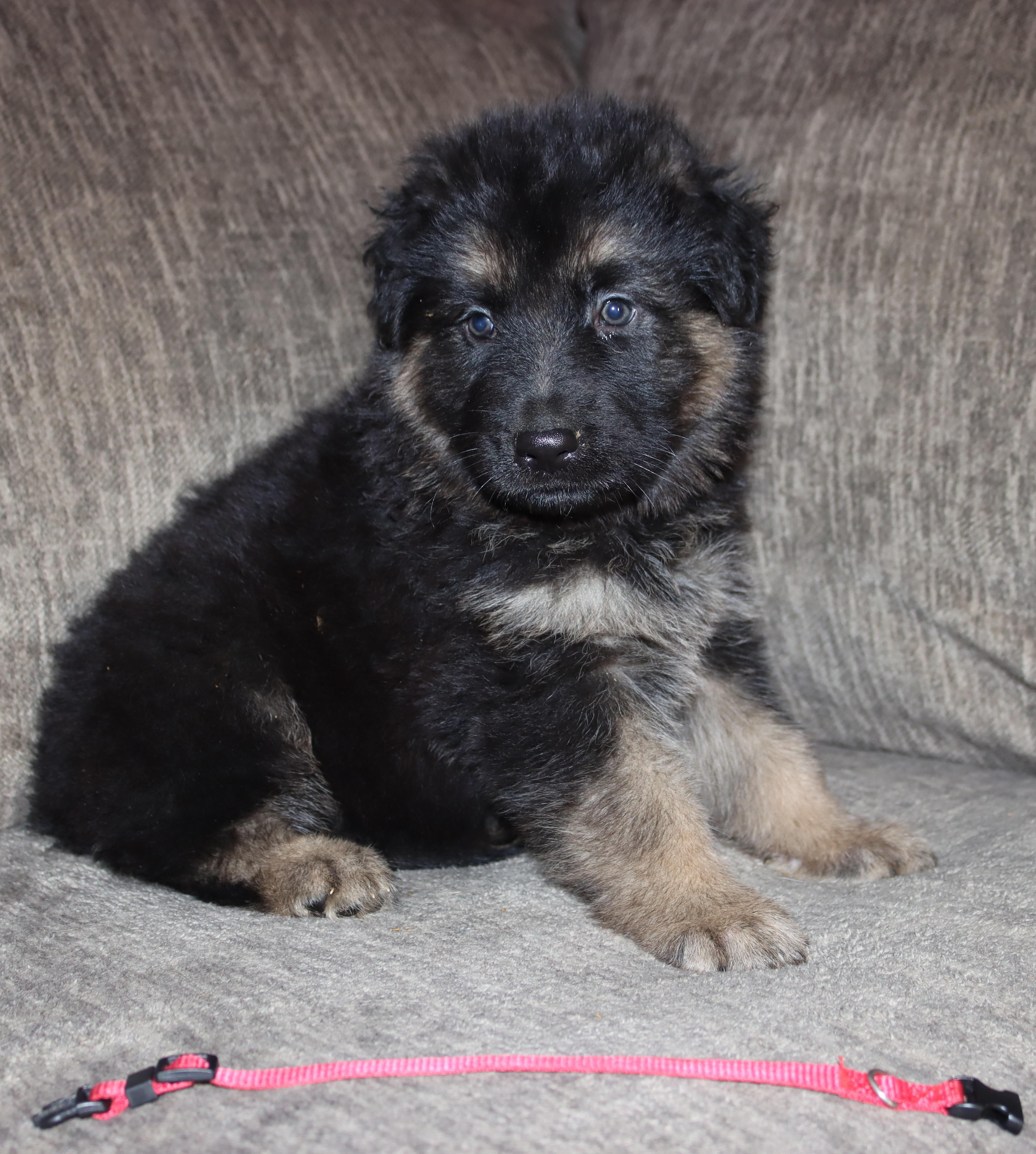 Our German Shepherd puppies include long and plush coat varieties. Coat types may vary depending on the parent dogs.
