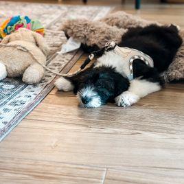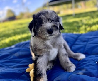 Milo has been doing very well adjusting to his new home in Michigan! He enjoys playing outside & snuggling! He is mommy’s little shadow! Kaytlyn has been fantastic to work with! Her communication with us during our adoption was excellent. Her responsive and knowledge about her puppies really made us realize Milo was the right pup for us! Milo has been the perfect addition to our family and the perfect little companion for his big brother!