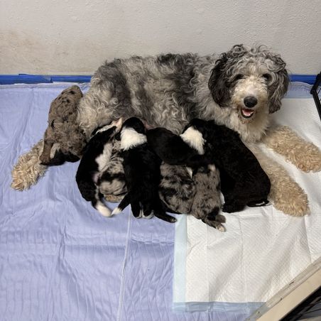 I began breeding for my passion for the sheepadoodle breed and their versatility. We love our dogs and all the memories we have made with them as part of our family. These dogs make fabulous companions - hypoalergenic, protective of family, adaptable, and adventurous.