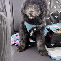 Our experience with getting our beautiful pup from Kaitlyn at Mulberry Ridge Doodles was a pleasure. It’s clear Kaitlyn and her family really care for the dogs and are very conscientious about their breeding and care. She had done a great job of socializing the puppies and beginning their training. We adopted “Pine” (blue collar), now known as “Pippin” and he has been a delight from the very first moment we met. He is such a calm, happy guy, is already house broken, and has fit in perfectly along side our cat and older standard poodle. We feel very lucky to have found Kaitlyn and Pippin!
