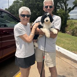 Kaytlyn was so wonderful to work with. We adopted Pecan now Hank at week 2 of age. She kept us informed with communications and pictures with his weekly progress. Every milestone was shared. This is what we appreciated the most. She went way beyond. When I shared with her he would have a dog door and be in a create at night she exposed him to those things before we picked him up. Every vet visit was shared as time went along. When we picked him up, she met us at a shared location and a folder with all of his history. We chose Good Dog because we were scammed out of $500 for another dog. Every time we thought we had found the dog for us they were scammers. So I found Good dog and paid Good Dog directly not the breeder and could not be happier. Kaytlyn raises very well rounded puppies and we have had many to compare to and he exhibits the best temperament. I am 71 years old with lots of experience. I highly recommend Kaytlyn and Good Dog. Hank is very lovable and my husband who did not want another dog after we had to put down our beloved Goldendoodle of 13 years is in love with his dog because of his temperament and intelligence. Thank you Good Dog and Katlyn for an excellent experience.