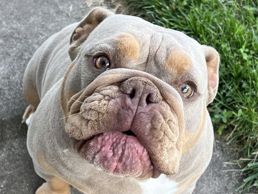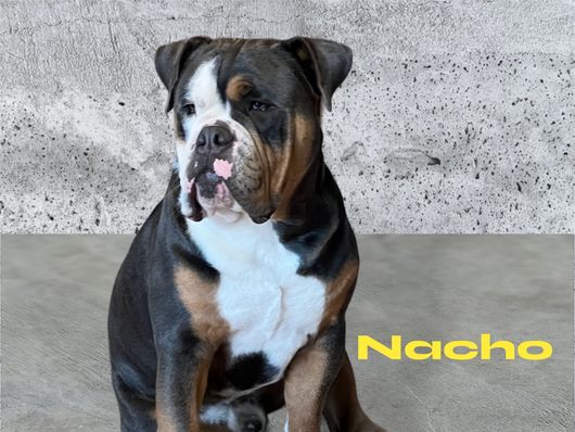 Nacho is a male Olde English Bulldogge. Carefully selected as a great representative of his breed, Lisa decided to make him part of their program. Lisa has passed Good Dog’s screening process, which involved a review of their breeding practices, environment, and the mental and physical health of their dogs.
