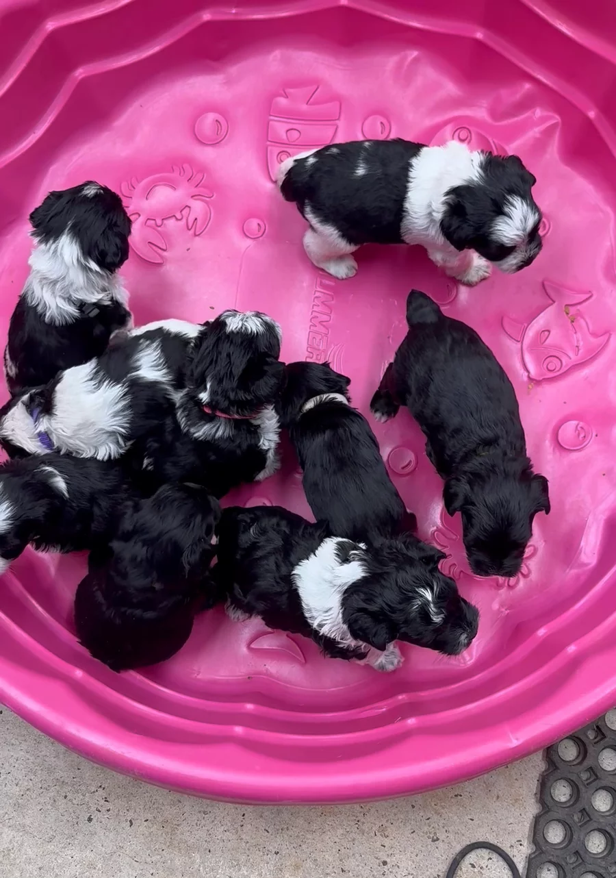 We bought our first girl Marlee 6 years ago. We fell in love with the breed. We then bought a sister for her, Ellie Mae. After being around them and seeing their loyalty and the love they brought to our family we decided to start breeding. I love the fact they didn’t shed and they were so smart.