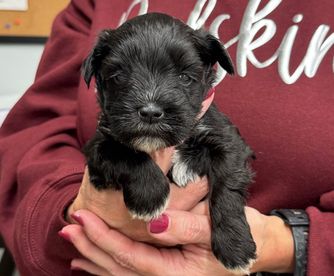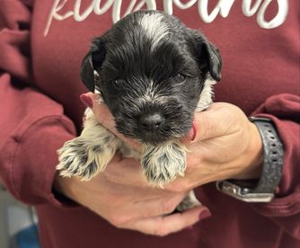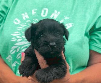 Millie is a black and silver CKC registered female. She is a very sweet and shy girl. She loves to run and play outside. She is a pleaser and wants to be praised and talked to. She is an excellent mother and did very well with her first litter.