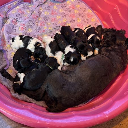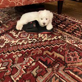 We are so happy with our experience with Regina. She answered all our questions, communicated so well, sent pictures weekly, and is just a nice person. Our puppy is sweet, adventurous, and potty trained thanks to Regina. He is getting along with our other dog really well and gaining confidence too. I absolutely recommend getting a puppy from Regina.