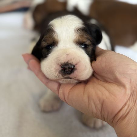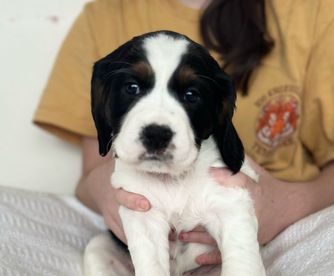 Our puppies include black white and tan, liver white and tan, and white and liver. Colors will vary depending on the parent dogs.