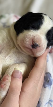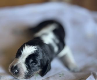 She is a gorgeous black tri roan. We have waited very patiently for this special girl💕 Dolly is goofy, kind, A GENIUS, and all around the best dog I’ve had. I will definitely speak highly of her puppies.
