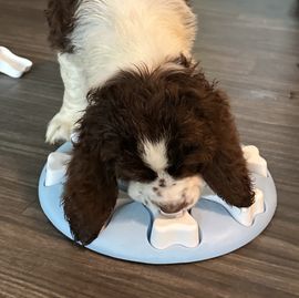 Huk is a male English Springer Spaniel. Carefully selected as a great representative of his breed, Grace decided to make him part of their program. Grace has passed Good Dog’s screening process, which involved a review of their breeding practices, environment, and the mental and physical health of their dogs.