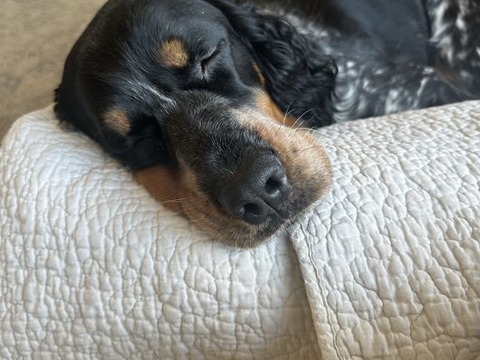 Willa Rose is a black tipped sable. She is a field/bench mix. Her colors do not do her beauty justice in the pictures. We love her and her spunky fun energy.