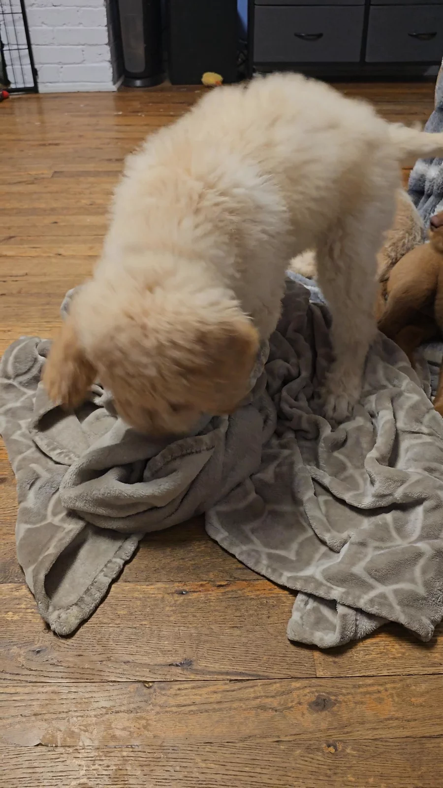 Echo trying to fluff his bed for a nap.