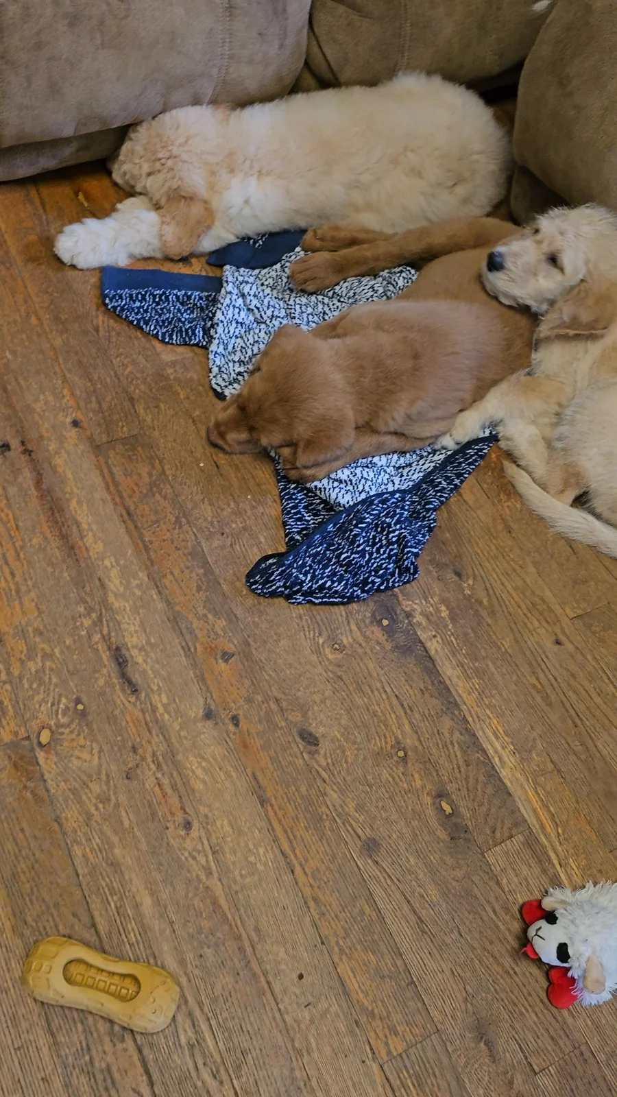 Bathed, blow dried, and napping through me using the shop vac. We expose them to everything we can think of to prepare them to be an excellent family pet.
