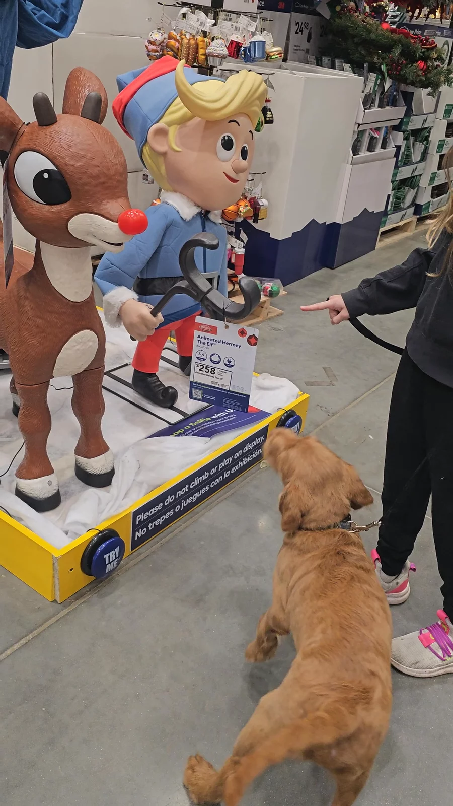 More socialization, this time with Christmas fun at Lowes Hardware. Echo and Chewie were not phased with the music or movements. They both did great walking through the electronic doors without hesitation, almost like they expected them to open for them 😆.