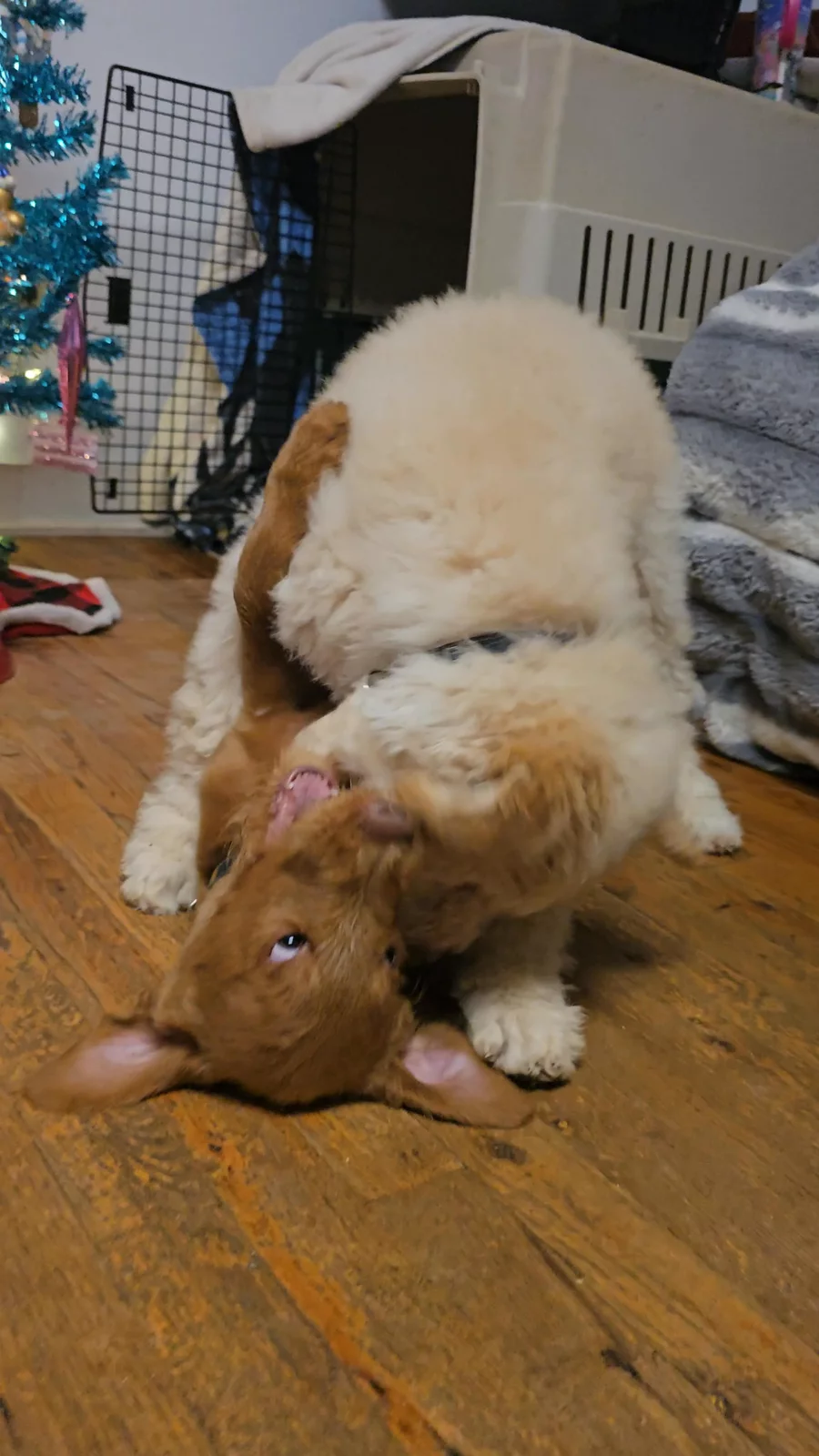 I think I got the wrong size 🤣. For anyone with one of my pups from this litter, they are definitely not a size large in the reindeer costume at Dollar Tree 🤣😂.