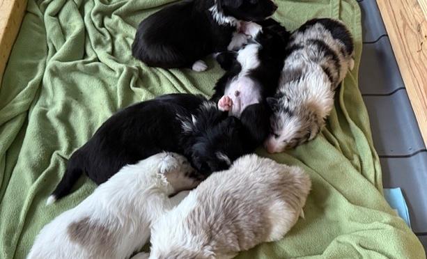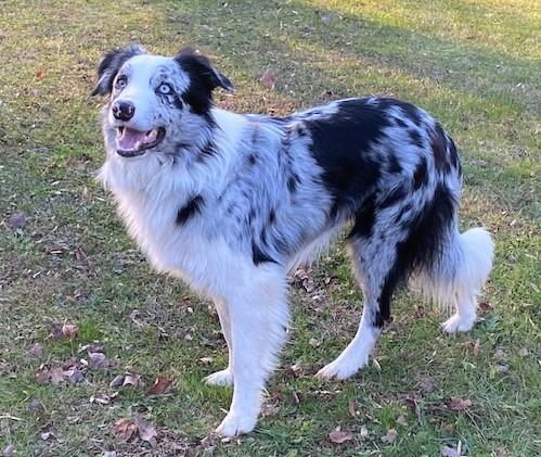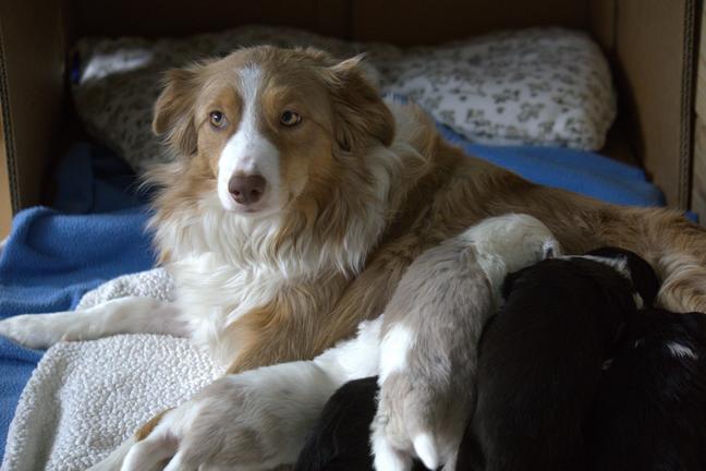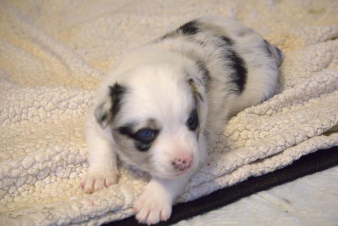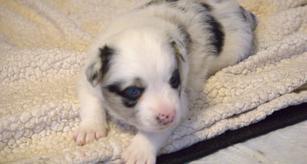 Our puppies include black and white, blue merle, lilac, and white ticked. Colors will vary depending on the parent dogs.