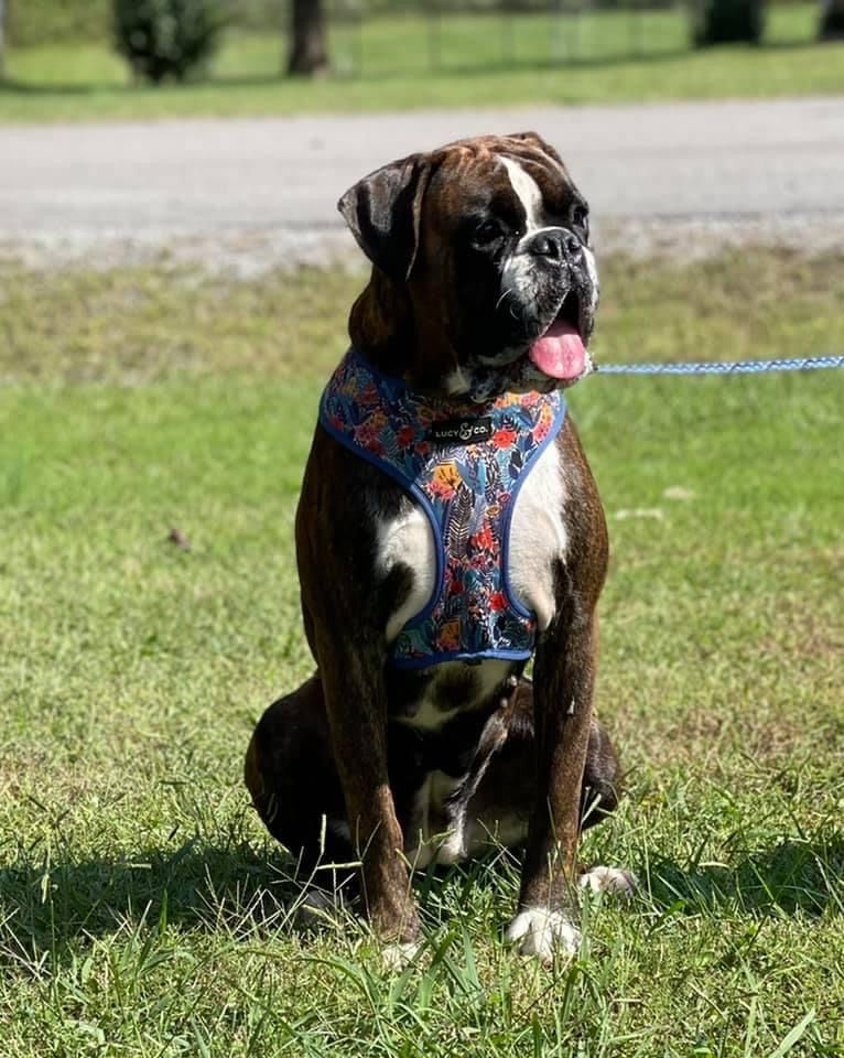 Dolly is a female Boxer. Carefully selected as a great representative of her breed, Amanda decided to make her part of their program. Amanda has passed Good Dog’s screening process, which involved a review of their breeding practices, environment, and the mental and physical health of their dogs.